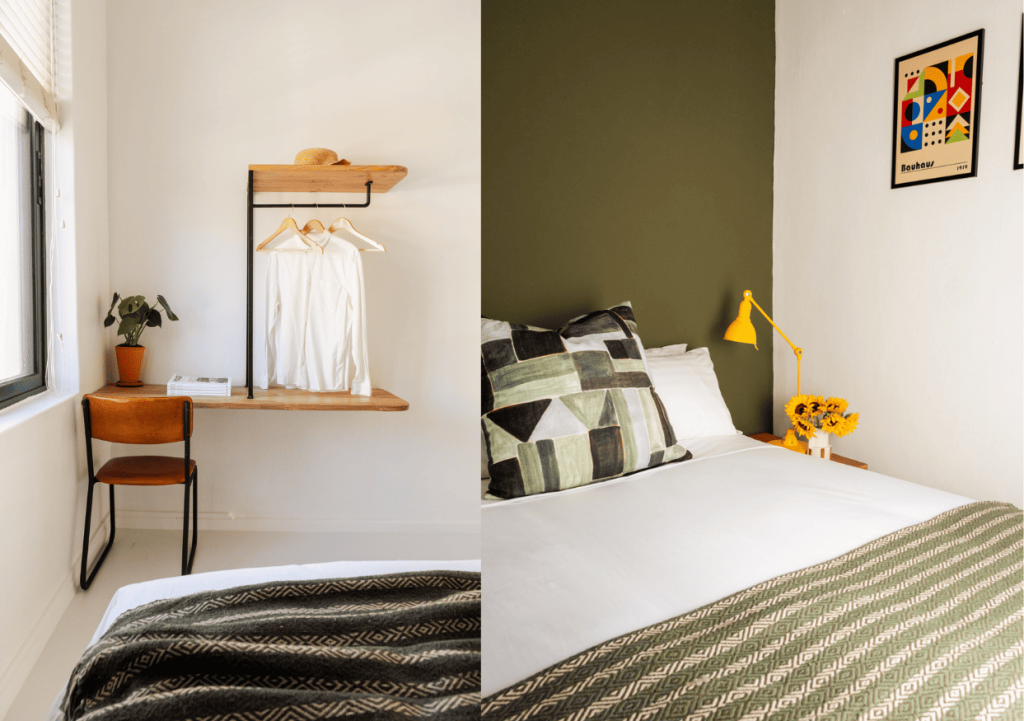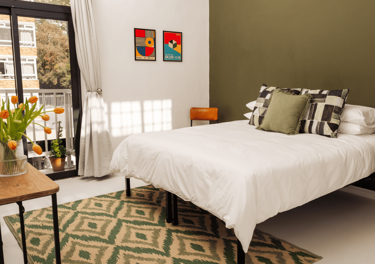 Double bed and ensuite bathroom with a shower. It includes a handmade desk and comes with fast, free wifi. This practical room is perfect for getting a good night’s rest before going out and exploring what Cape Town has to offer.